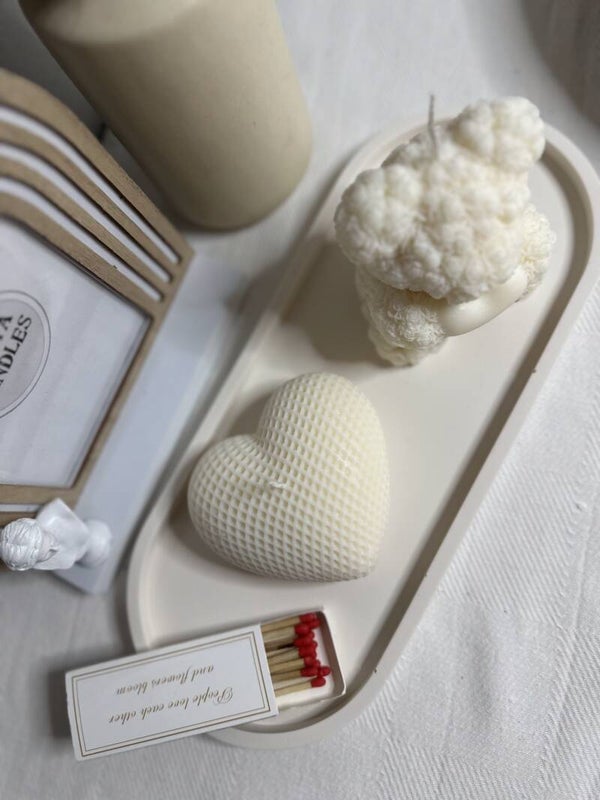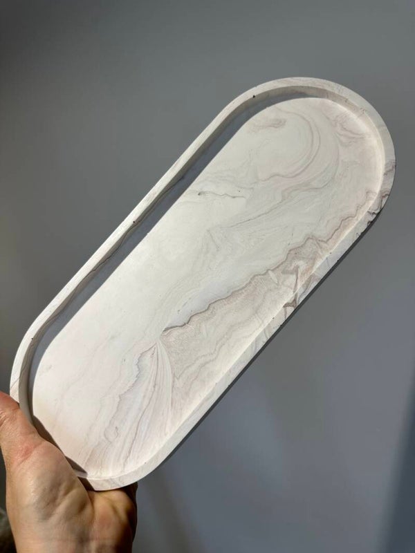 A Jesmonite oval tray is a decorative dish made from Jesmonite, an eco-friendly composite material, and features a distinctive ribbed or fluted texture. It is a versatile home accessory used for holding items like jewelry, keys, or candles, and is known for its modern, minimalistic aesthetic.