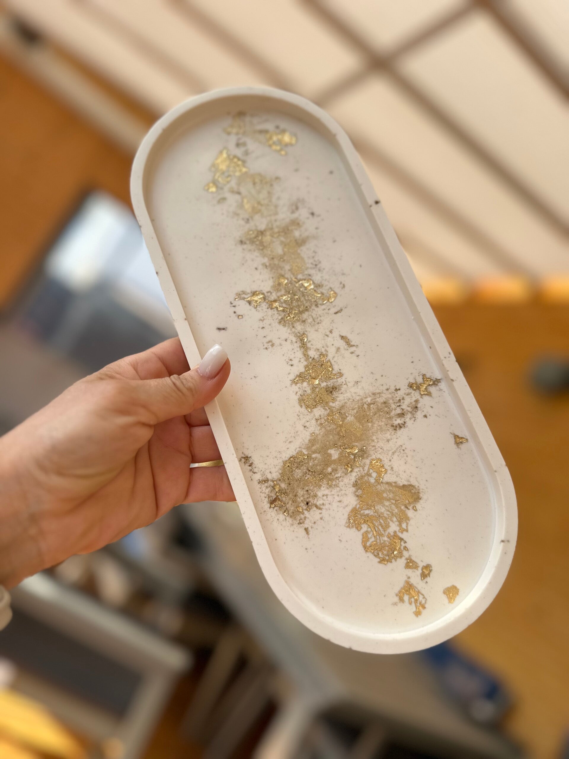 Trays are poured, sanded and sealed by hand with bottom pads to protect the surface from scratches. Please note products handmade with care but here may be slight differences, minor irregularities and bubbles durning production.