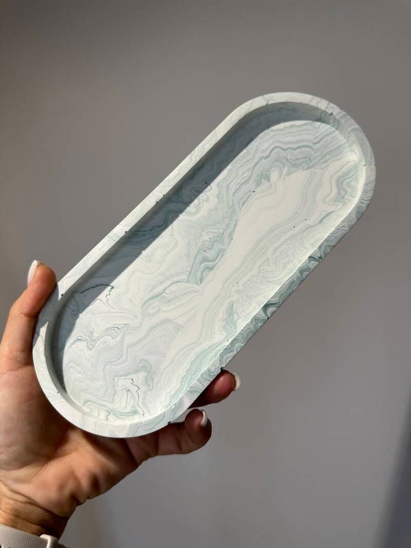 Trays are poured, sanded and sealed by hand with bottom pads to protect the surface from scratches. Please note products handmade with care but here may be slight differences, minor irregularities and bubbles durning production.