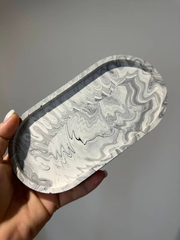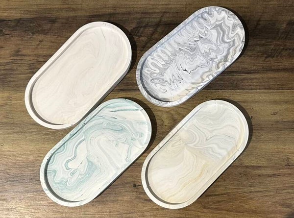 Trays are poured, sanded and sealed by hand with bottom pads to protect the surface from scratches. Please note products handmade with care but here may be slight differences, minor irregularities and bubbles durning production.