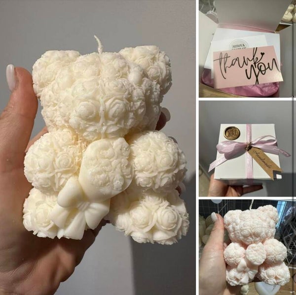 A decorative flower teddy bear candle at home symbolizes coziness, warmth, and a touch of whimsy or childhood nostalgia. It serves as a charming decorative item and gift, evoking feelings of comfort and sweetness, and is particularly popular for baby showers, birthdays, or to create a playful and aesthetic atmosphere in a nursery, living room, or bedroom.