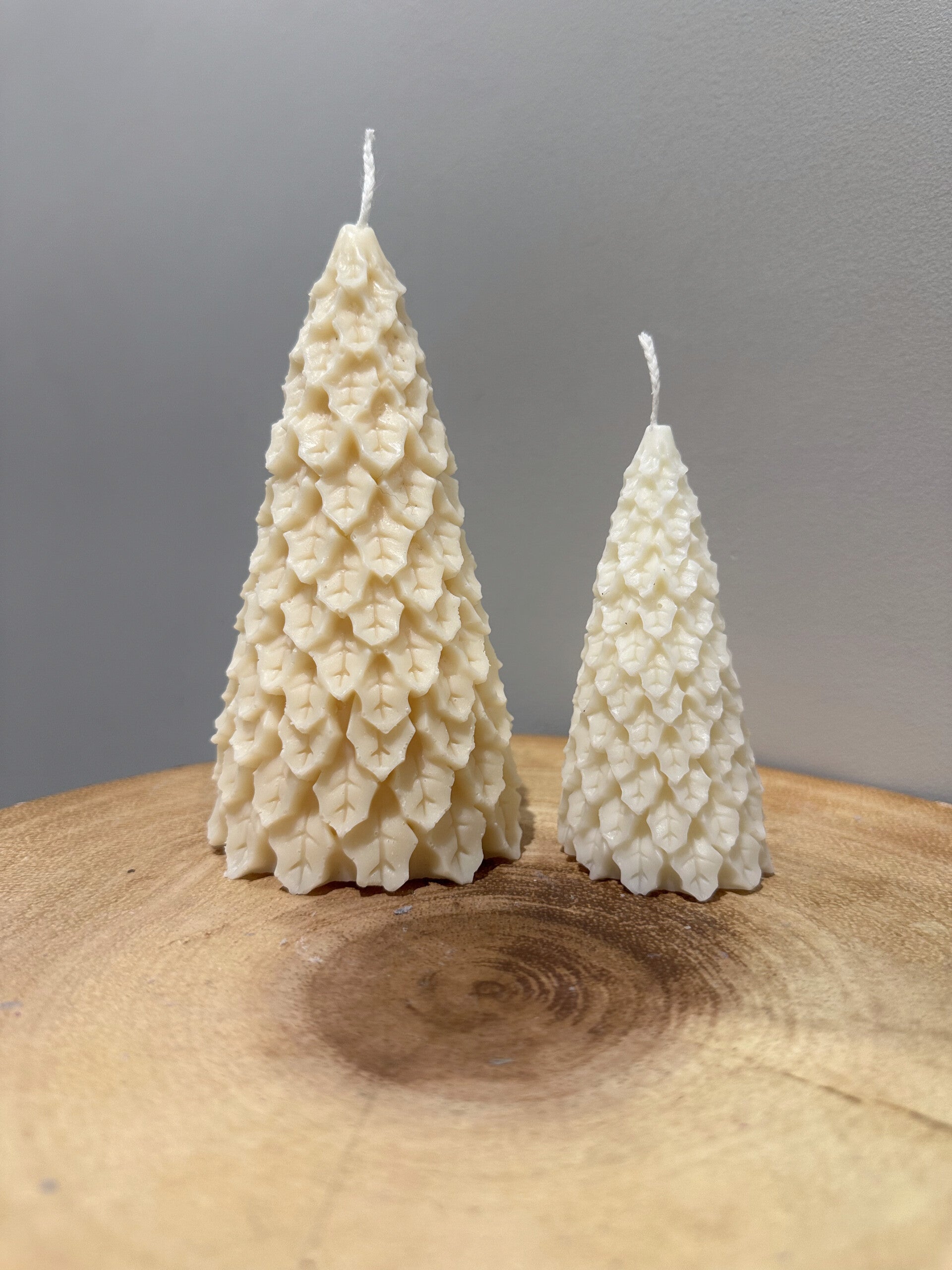 A leaf Christmas tree candle represents the joy and light of the Christmas season, with origins tied to the historical tradition of lighting candles for hope and remembrance, and the nostalgic appeal of vintage decorations.