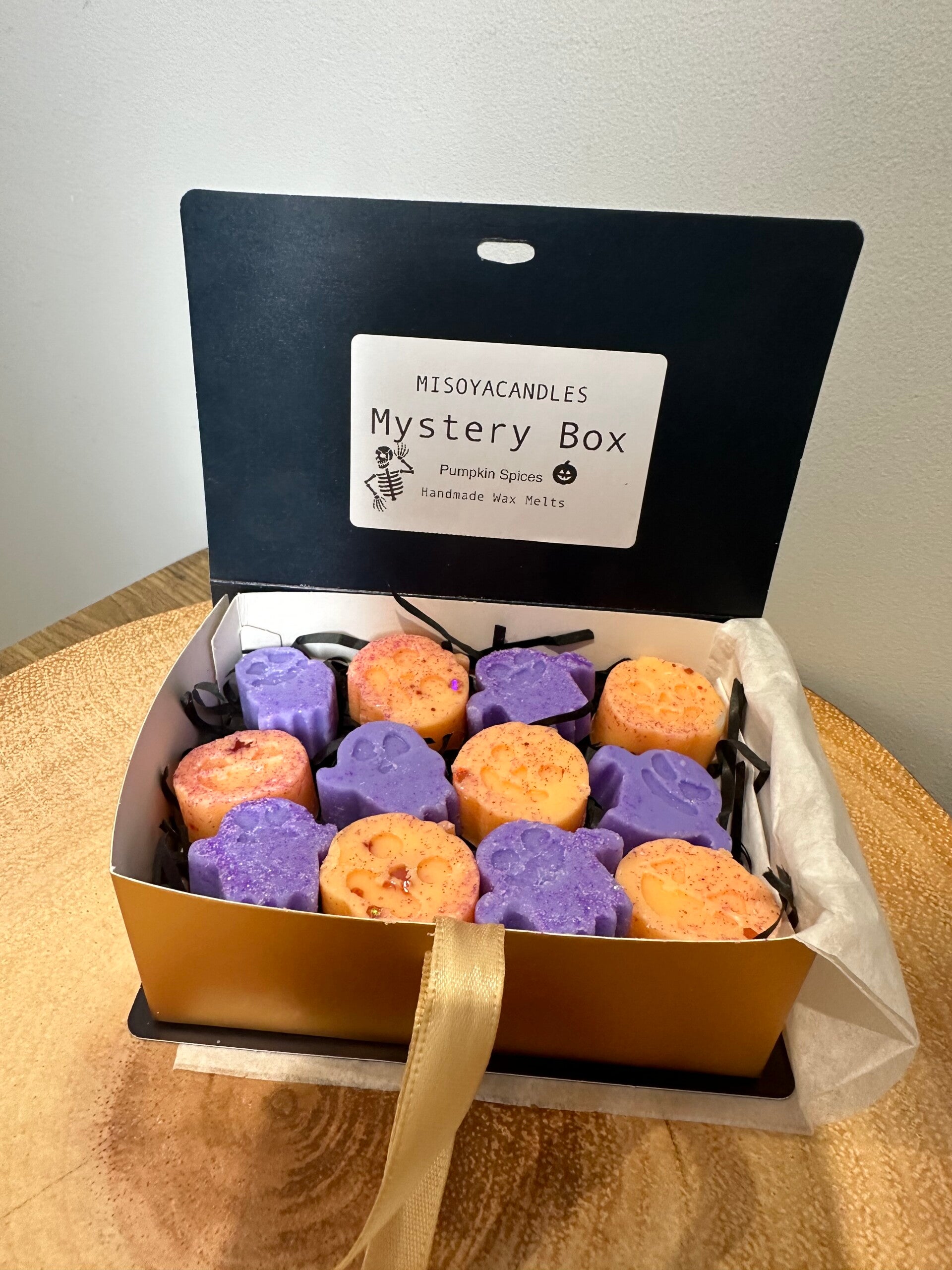 Handmade unique halloween mystery box with wax melts. Great fun way to treat yourself or a loved one to a surprise gift!