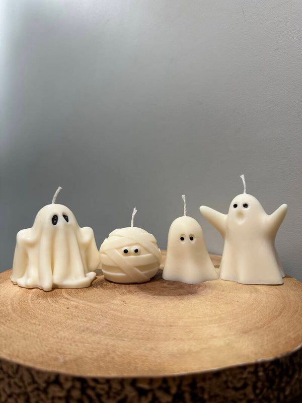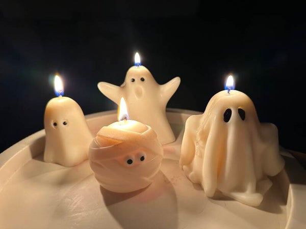 A "mummy and ghost candle home" refers to a set of decorative candles with a "mummy" and "ghost" design, primarily used for Halloween and autumn-themed home decor to create a spooky but adorable atmosphere.