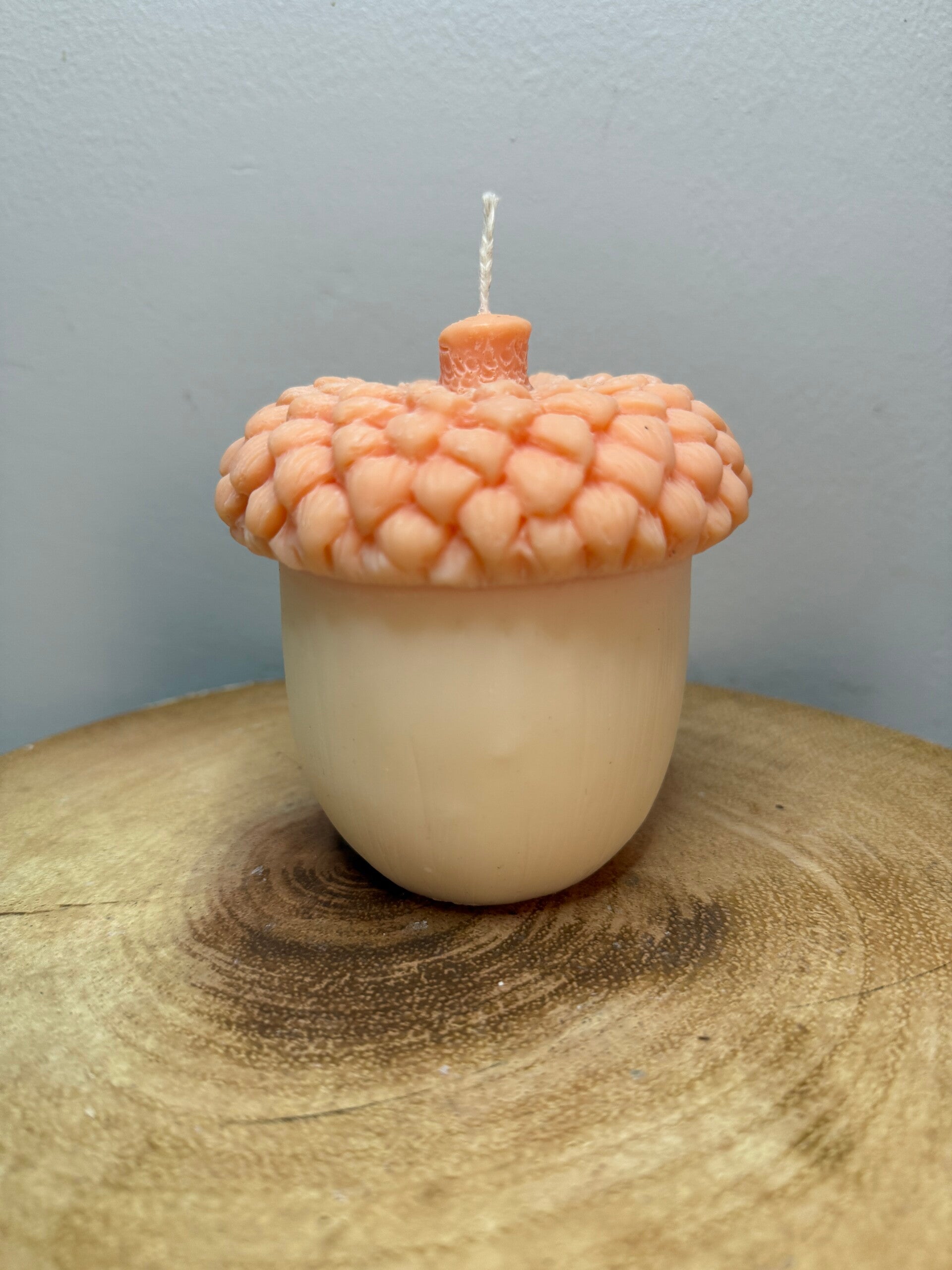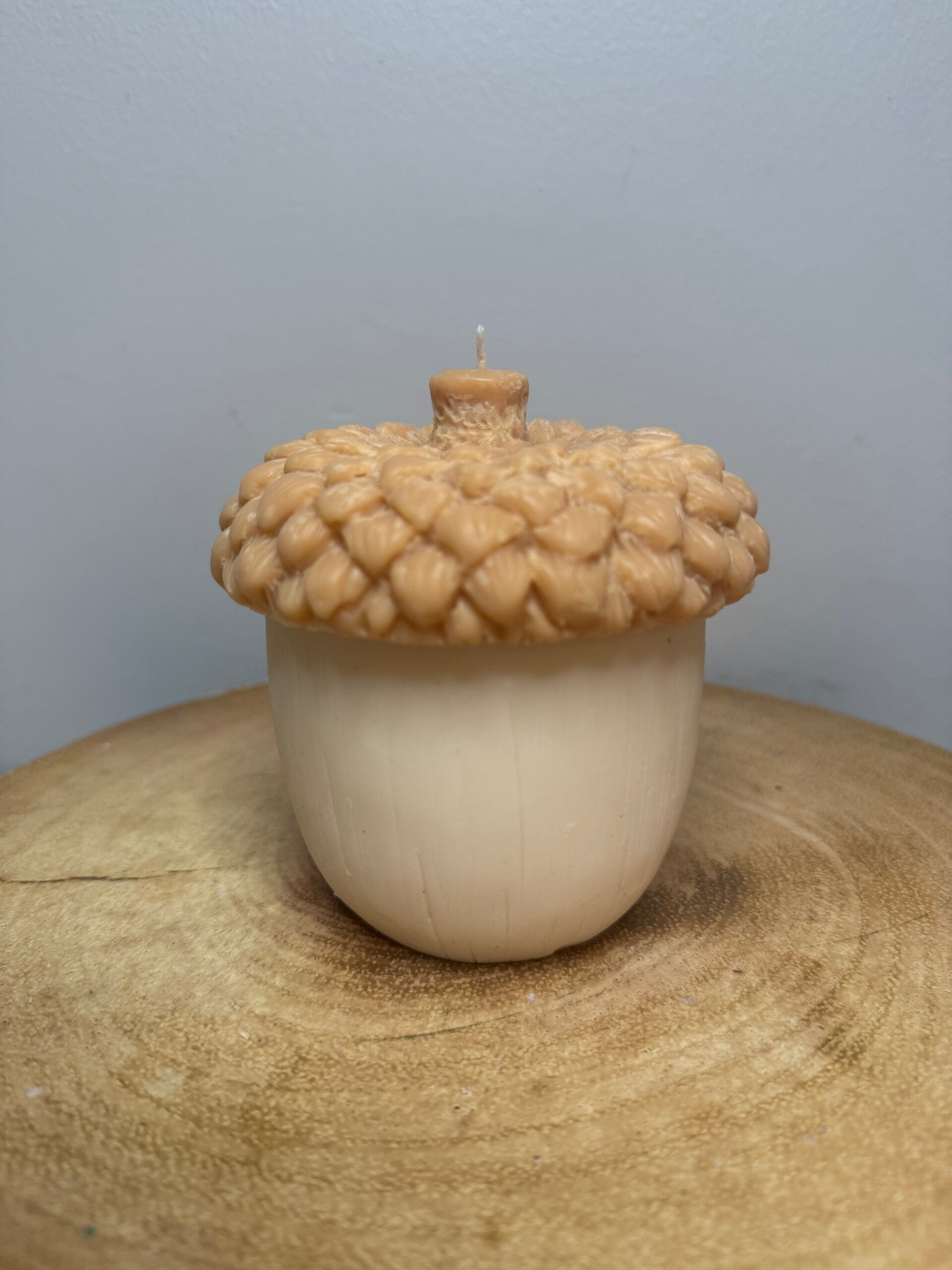 An acorn candle symbolizes growth, strength, and potential, representing how great things can emerge from humble beginnings. It also embodies the essence of autumn, bringing a sense of warmth, comfort, and the cozy ambiance of the season into the home, often serving as a decorative statement piece.