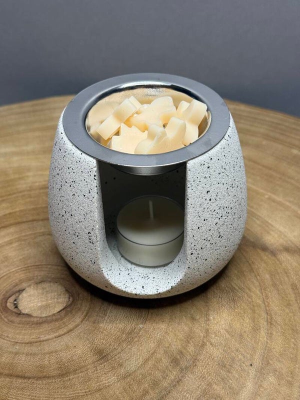 STONEWARE WAX BURNER - SILVER GREY GRANITE