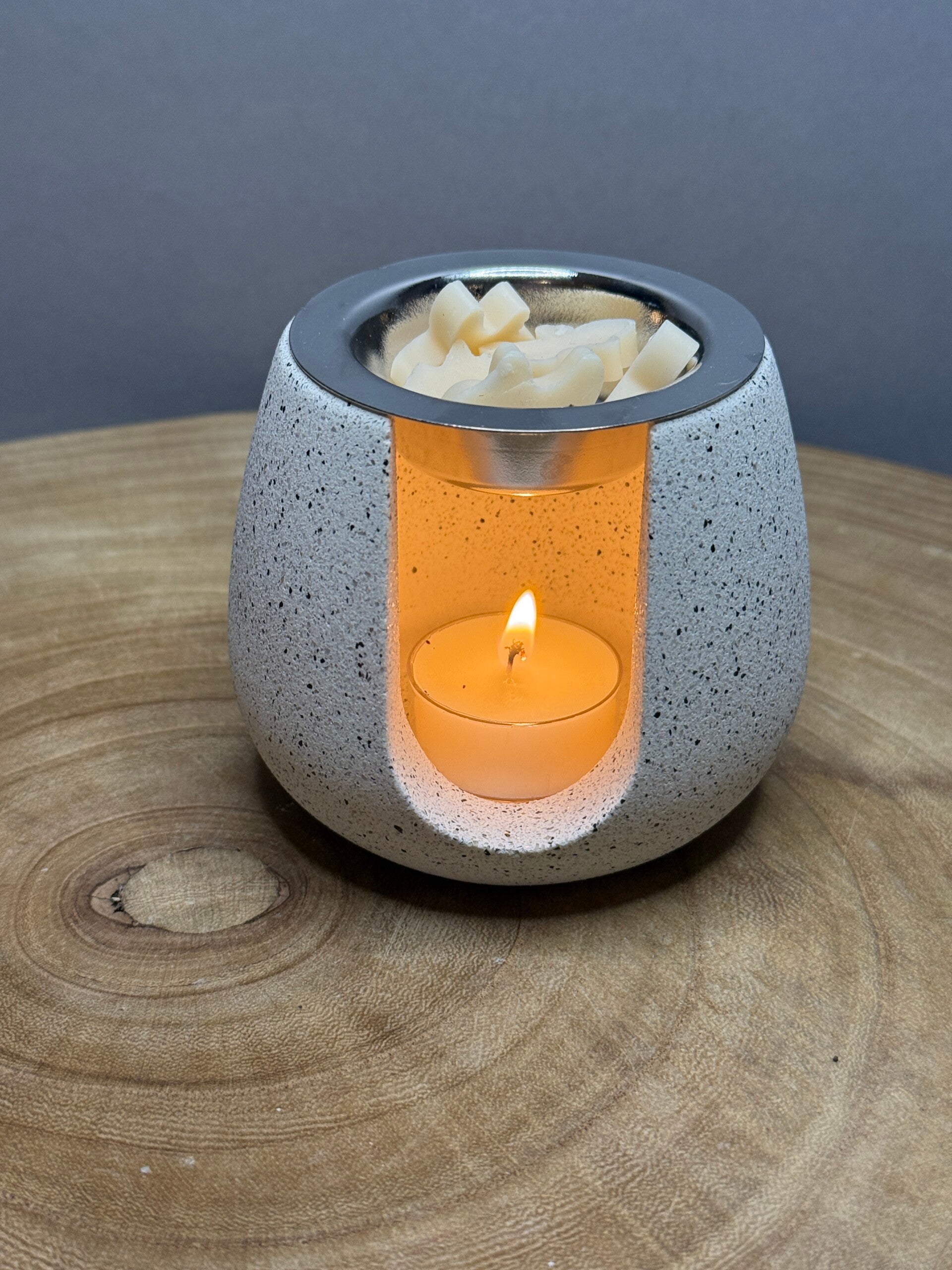 STONEWARE WAX BURNER - SILVER GREY GRANITE.