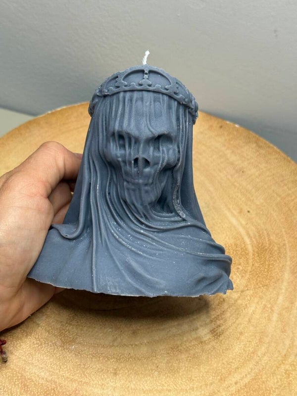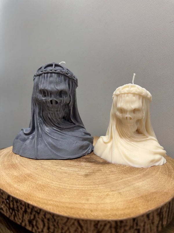During Halloween time, candles are often used to honor ancient traditions and celebrate the thinning veil between the worlds of the living and the dead. The Veiled Lady can be a focal point for these rituals, connecting themes of the unseen with the tangible flame.