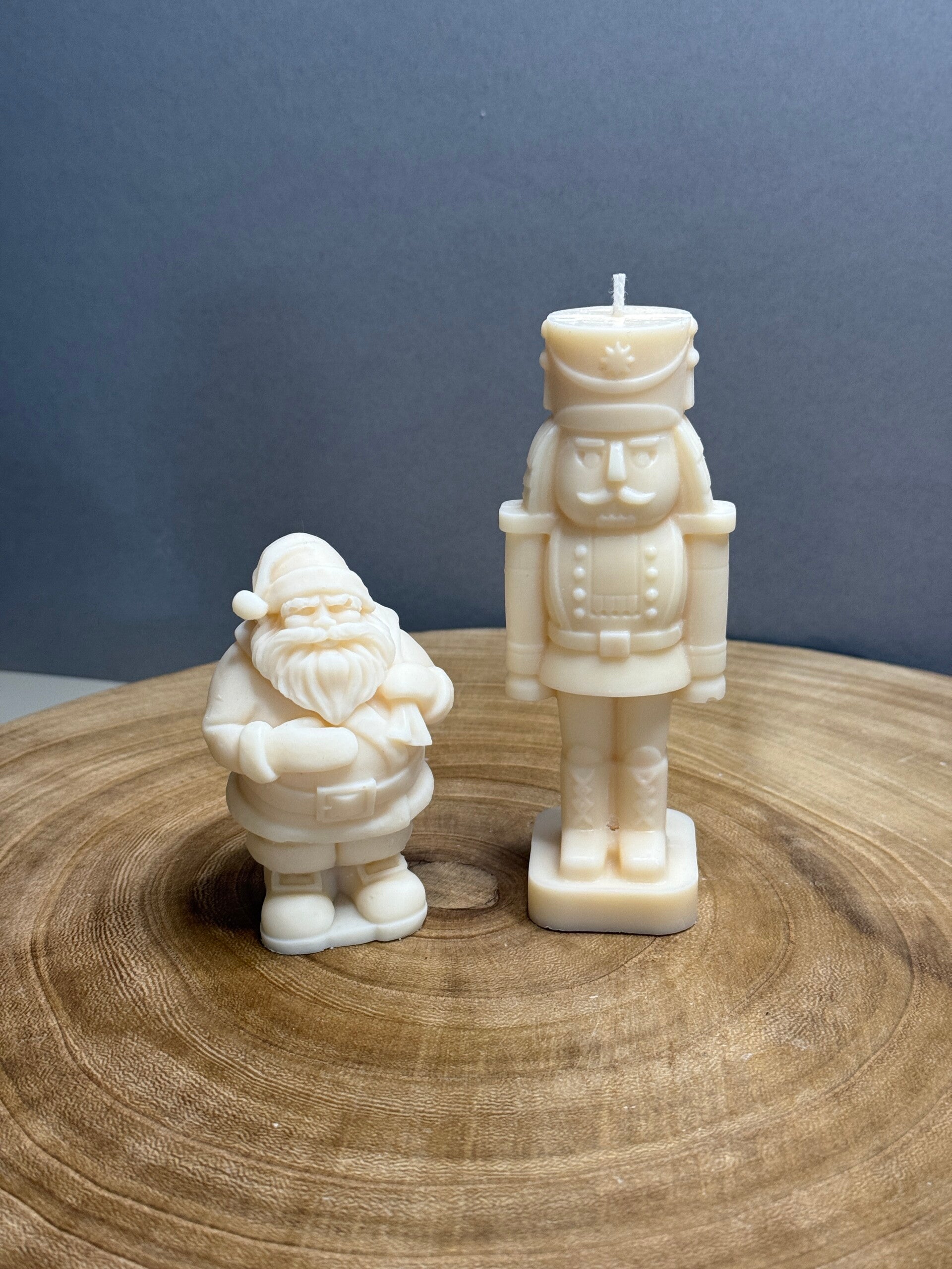 A nutcracker candle is a Christmas decoration shaped like a traditional German nutcracker, symbolizing strength, protection, and good luck in the home.
