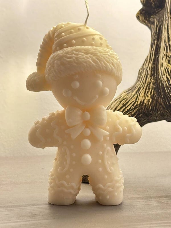 A gingerbread man candle symbolizes Christmas spirit, nostalgia, and warmth by evoking the sweet, spicy scent of the holiday cookie and the joy of festive traditions like baking and decorating for the holidays. In the home, its meaning extends to creating a cozy, festive atmosphere and serving as a whimsical decorative accent that brings the magic of the season indoors.