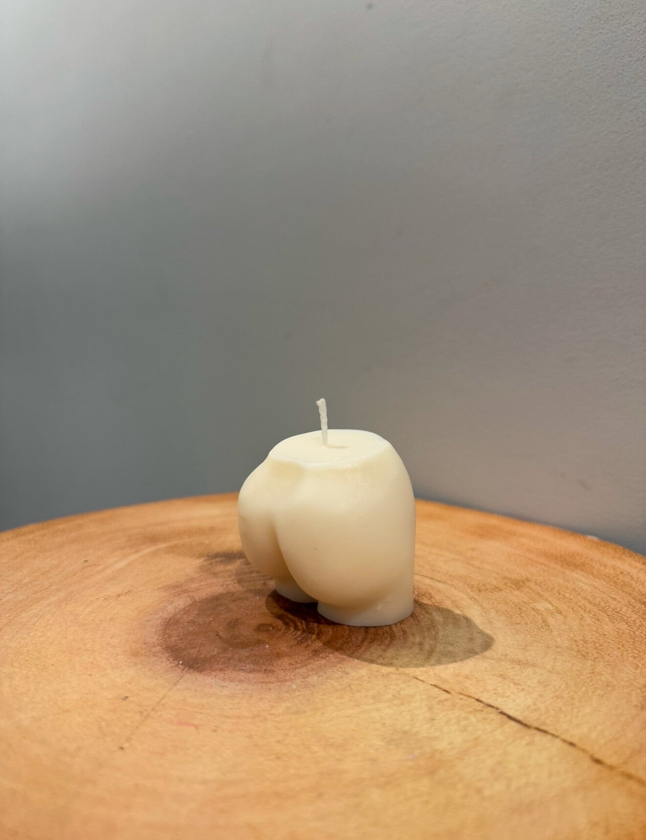 Candle refers to a decorative candle sculpted in the shape of a woman's buttocks. These are often sold as novelty items or gifts for their unique and humorous aesthetic, emphasizing the shape.