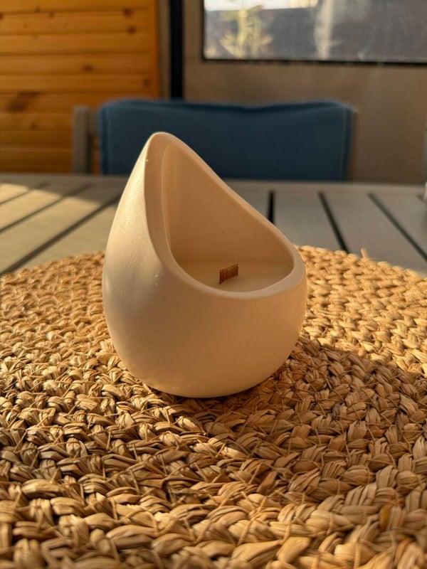 Jesmonite Tear Drop candle with wooden wick are made of wood as opposed to cotton string. As a result, the candle emits a crackling sound similar in nature to a fireplace with wood logs.