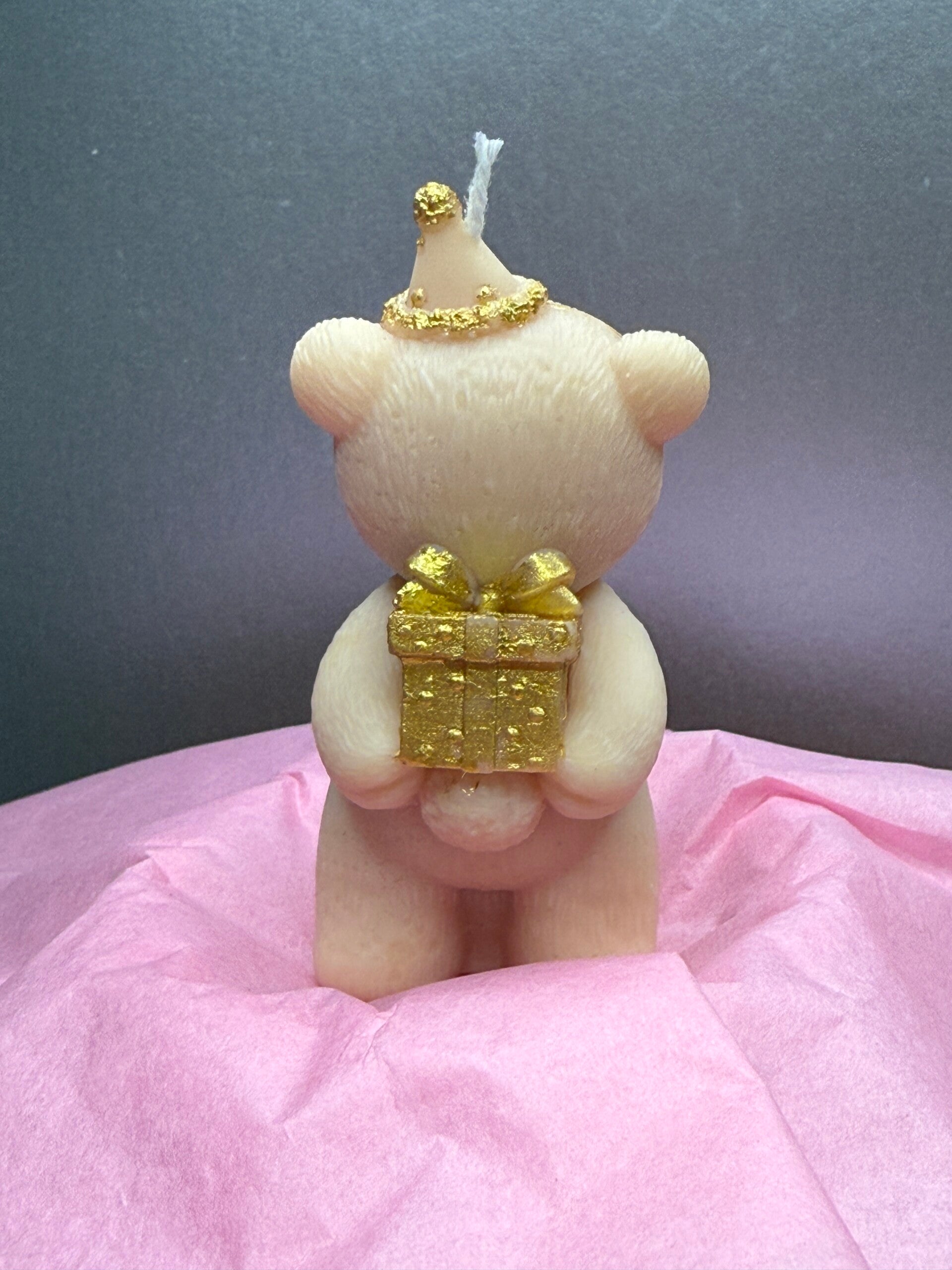 Teddy Bear Candle Cake Topper. Special for your Birthday Cake. The candle has two wooden sticks to be placed in the cake.