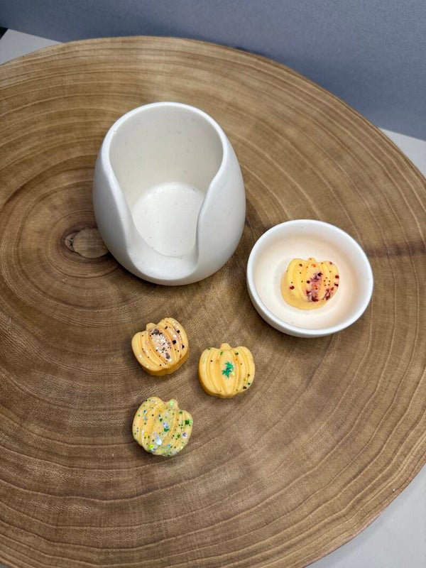 For Jesmonite wax melt burner safety, always place the burner on a stable, heat-resistant surface away from flammable items, out of reach of children and pets, and in a well-ventilated area. Inspect the burner for damage before use. Use the correct wax melts for the burner type, do not leave it unattended, do not touch while hot, and extinguish the tealight when leaving the room or going to bed.