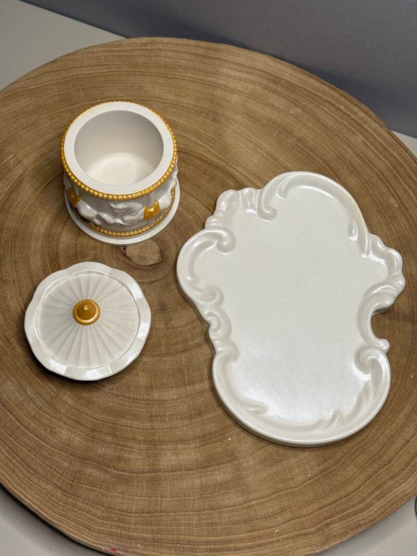 These jars are often designed to be refillable or to be repurposed as trinket dishes, holding sentimental value as handcrafted pieces of art that contribute to a maximalist or kitsch aesthetic.