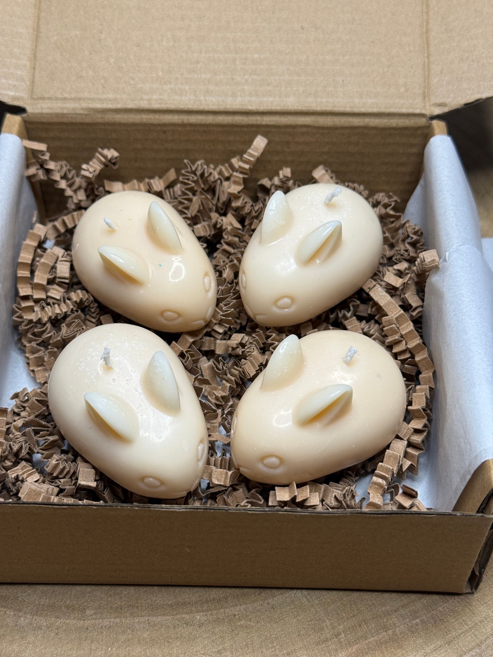 Our Mini Bunny Love Candle is a delicate, handcrafted piece designed to bring warmth and charm to your home. Its cute bunny shape makes it a perfect gift for loved ones, baby showers, Easter baskets, or simply as a beautiful decorative accent.